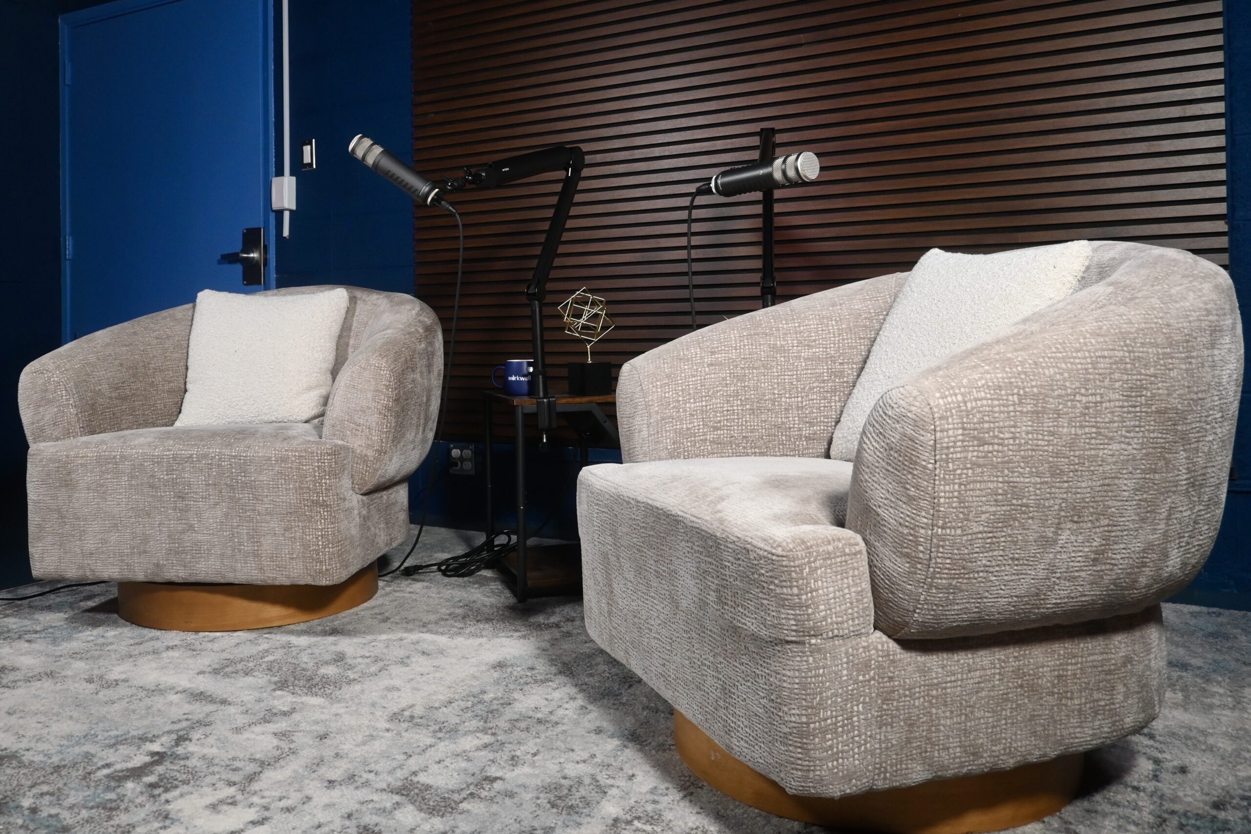 Step into our purpose-built 625 sq ft Podcast Studio, designed to meet the needs of creators, podcasters, storytellers, and audio professionals alike.